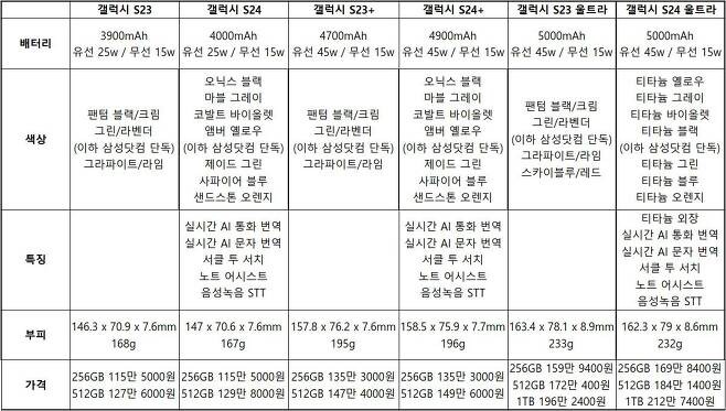 | 갤럭시 S24 울트라 | 256GB | 169만 8400원 |