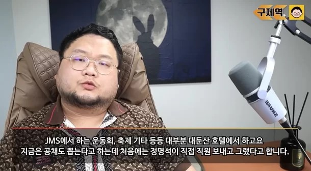 유튜버 구제역은 'MBC 나 혼자 산다' 프로그램에서 소개된 대둔산 호텔이 JMS 기업과 관련이 있다고 주장했습니다. 특히, 정명석이 직접 직원을 보낸다는 주장과 함께 정명석의 부적절한 행동이 그곳에서 일어났다고 밝혔습니다.
