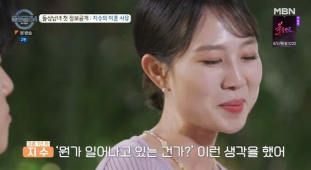 지수는 남편의 여행 후 이상한 기운을 느꼈고 부부의 일상적인 변화가 이혼의 원인이 되었습니다. 부부의 생활이 바뀌면서 새로운 감정들이 들어오고, 서로의 관계가 달라지는 것을 느꼈다고 했습니다. 이로 인해 갈등이 발생하고, 결국 이혼을 하게 되었다고 밝혔습니다. 이혼 절차 진행 중 받은 카드 내역서를 보고 비행기 왕복 티켓에 적힌 다른 사람의 이름에 불안했던 마음이 사실이 되었고 이혼 과정은 빠르고 깔끔했지만 마음속 상처를 깊이 간직하고 있습니다.