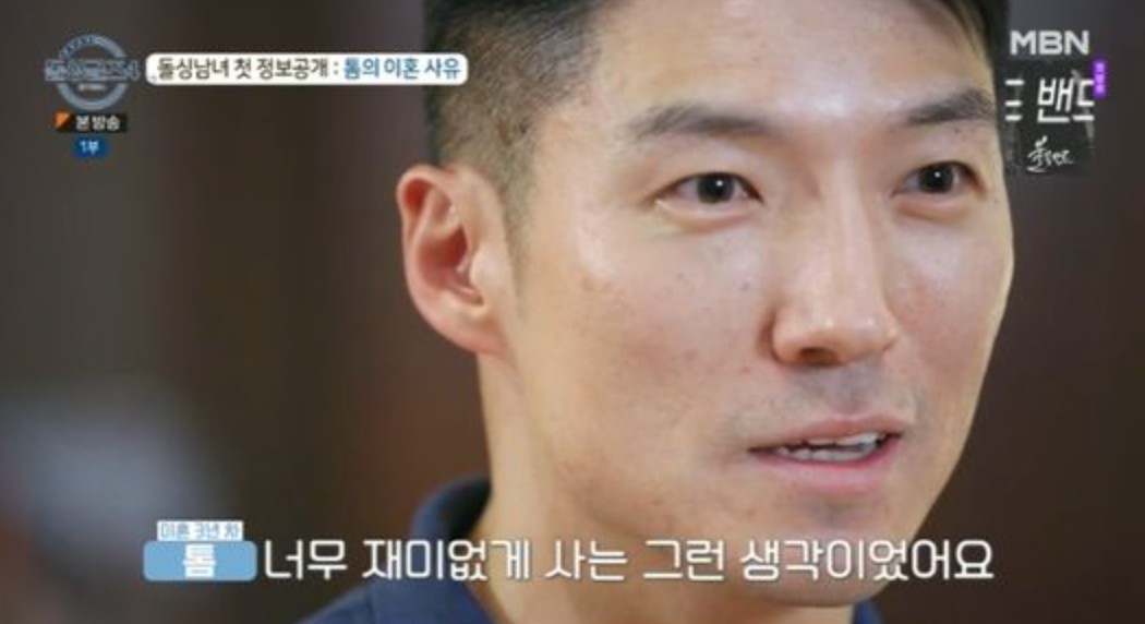 톰은 "우리는 재밌게 결혼생활을 했지만 가치관과 성향이 다른 것 같아서 어느 시점에서 각자 따로 행복하게 살기로 결정했습니다. 전 와이프는 대만 출신이었고, 한국 드라마를 좋아해서 한국말을 조금 할 수 있었습니다. 저은 외향적이고 다이내믹한 삶을 원했고, 저와는 달리 전 와이프는 내향적이고 집에서 평온한 시간을 보내는 것을 더 좋아했습니다. 서로의 차이로 인해 그 당시에 재미없게 느껴졌습니다"라고 말했습니다. 이러한 가치관과 성향의 불일치로 인해 결국 합의 이혼을 하게 되었다고 말했습니다.
