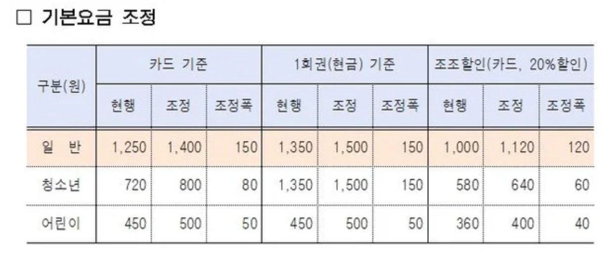 요금 조정으로 청소년 요금은 80원 올라 800원으로, 어린이 요금은 50원 올라 500원으로 조정됩니다. 수도권 지하철을 이용하는 청소년 및 어린이들도 요금 인상 부담을 감수해야 합니다.