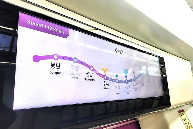 열차가 출발하면서 승객들은 기쁨의 탄성을 자아냈습니다. GTX-A는 시속 172km로 빠른 속도로 달려가지만, 안정적인 진동과 조용함이 놀라운 점입니다. 동탄에서 성남까지 단 13분이면 이동할 수 있는 빠른 속도에 승객들은 감탄했습니다. 동탄에서 수서역까지는 19분 정도 시간이 소요됩니다.