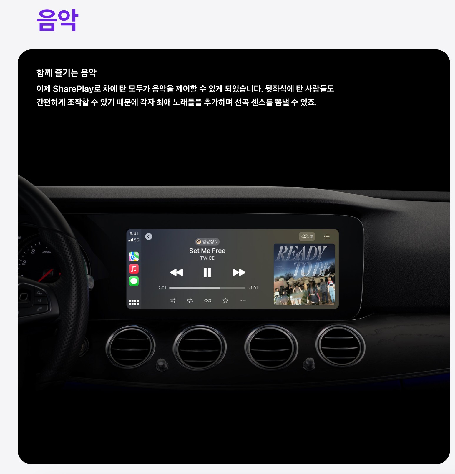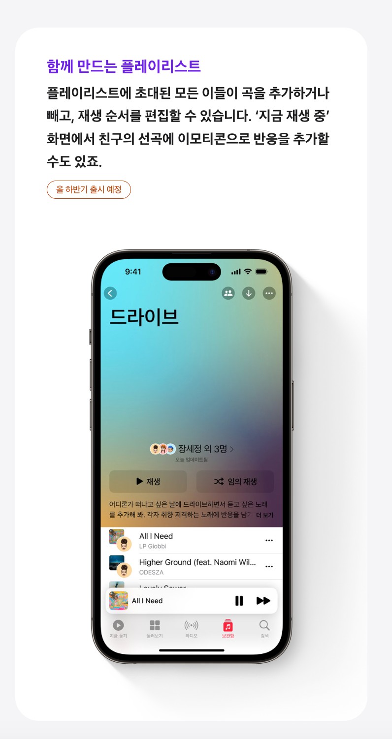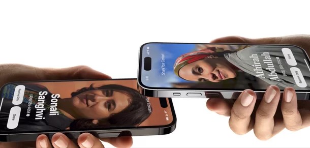 아이폰 간 편리한 사진 및 영상 공유를 위한 '에어드롭' 기능에는 '네임드롭'이라는 새로운 기능이 탑재되었습니다. '네임드롭'을 통해 아이폰 사용자들은 기기를 대기만해도 연락처 정보를 교환할 수 있으며, 가까이 있는 사용자들은 콘텐츠를 공유하거나 쉐어플레이를 시작해 음악 감상이나 영화 시청을 함께 즐길 수 있습니다.