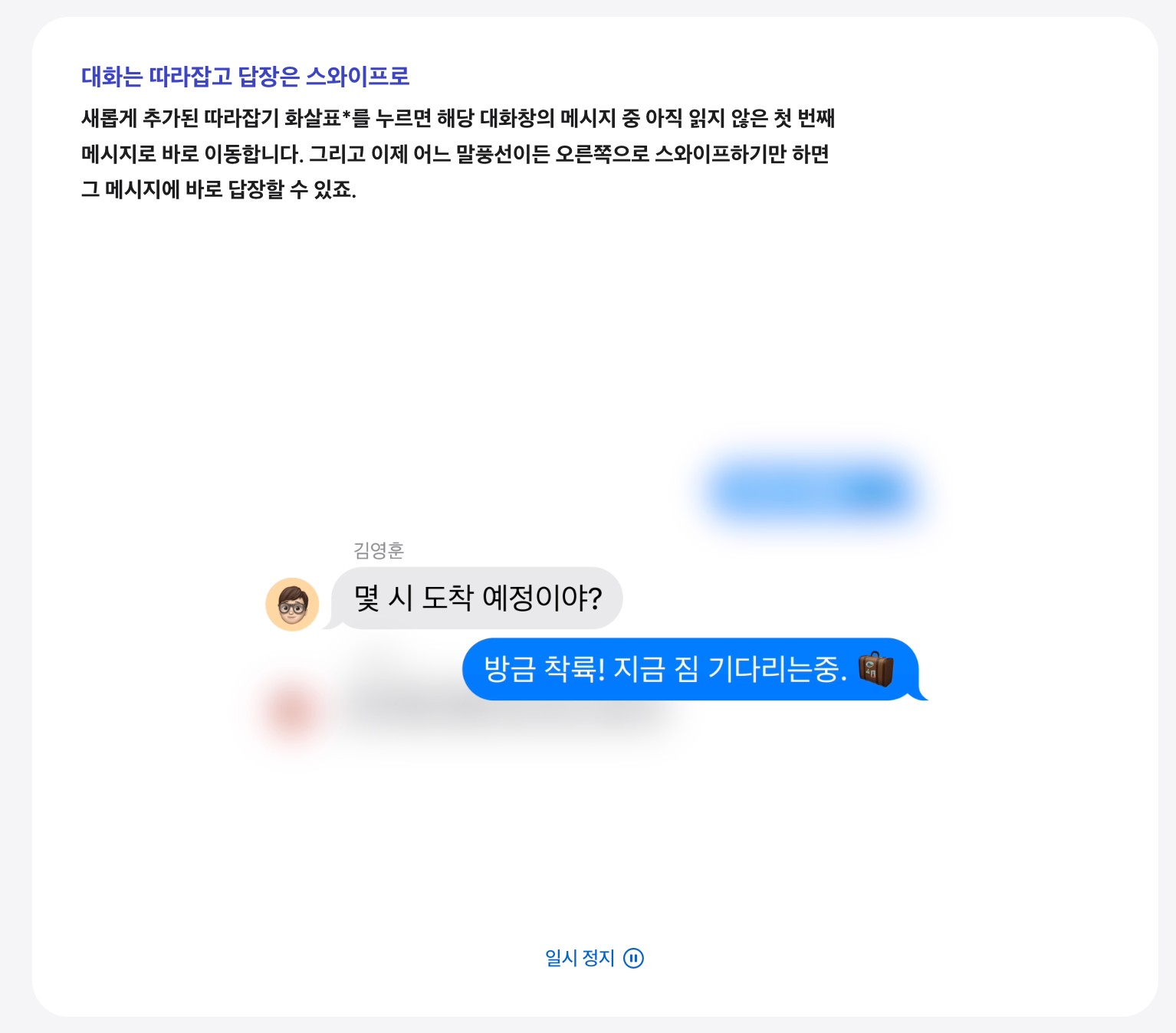 또한 실시간 음성 메시지 기능이 도입되어 이제 상대방이 남긴 음성 메시지를 실시간으로 전사문으로 확인할 수 있습니다. 발신자가 메시지를 남길때 동안에도 전화를 받을 수 있어 더 효율적인 의사 소통이 가능합니다.