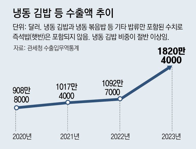 이마트가 국내에서 냉동김밥을 판매하는 이유는 냉동김밥 시장의 큰 가능성을 확인했기 때문으로 해석되는데요. 특히 미국에서 현재 냉동김밥이 큰 인기를 얻으면서 국내에서도 꾸준한 수요가 예상됩니다.