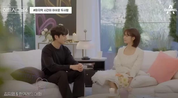 채널A의 연애 리얼리티 프로그램 '하트시그널4'에서 만나 현실 커플이 된 김지영과 한겨례가 결별했다는 소식입니다. 14일 김지영은 네티즌의 "현재 연애 여부 좀 알려주세요. 헤어졌다고 해도 뭐라 할 사람도 없는데"라는 질문에 "솔로입니다"라고 답변했습니다.