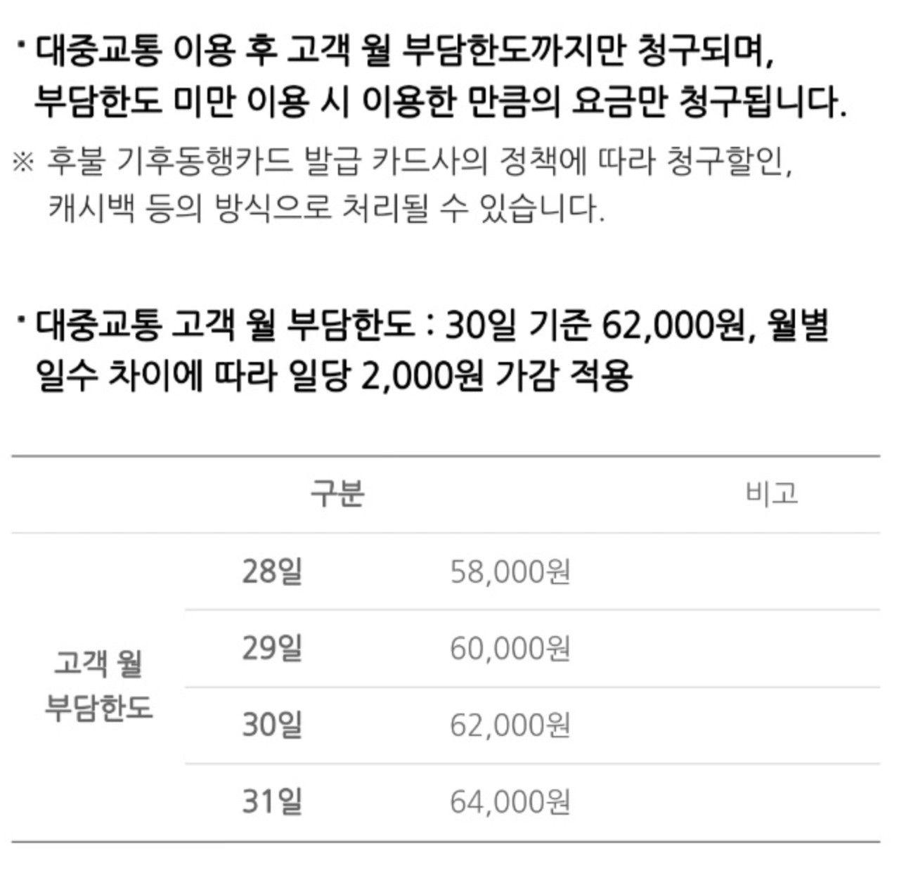 - 무제한 대중교통 이용: 카드 소지자는 정해진 금액 내에서 대중교통을 무제한으로 이용할 수 있습니다.