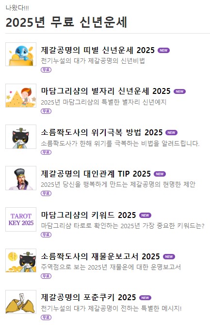 2025년 신년운세를 무료로 확인해볼 수 있는 사이트 중 몇 가지를 소개하겠습니다.