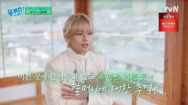 6일 방송된 tvN 유퀴즈 온 더 블럭에서는 '세계를 흔든다' 특집으로 꾸며졌으며, 이 특집에는 방탄소년단의 멤버 중 하나인 뷔가 등장했습니다. 뷔는 솔로 앨범 발매와 관련하여 다양한 에피소드를 공유하며 관심을 모았습니다.