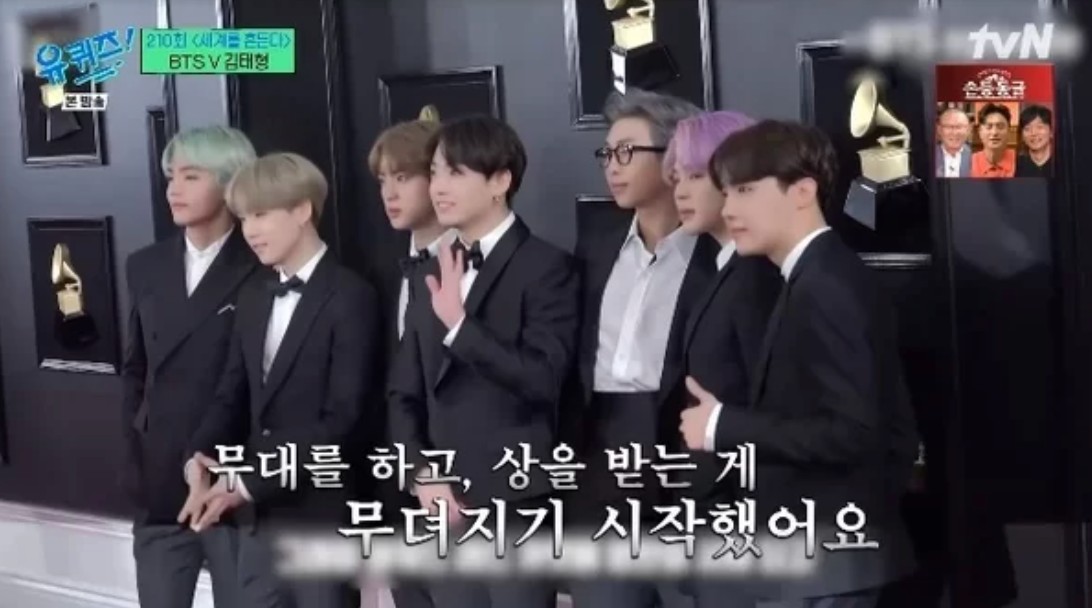조세호는 "좋아한다는 편지를 많이 받지 않았냐"라고 물었고, 뷔는 "받긴 했는데, 친구들을 더 좋아했던 것 같아요"라고 말했습니다.